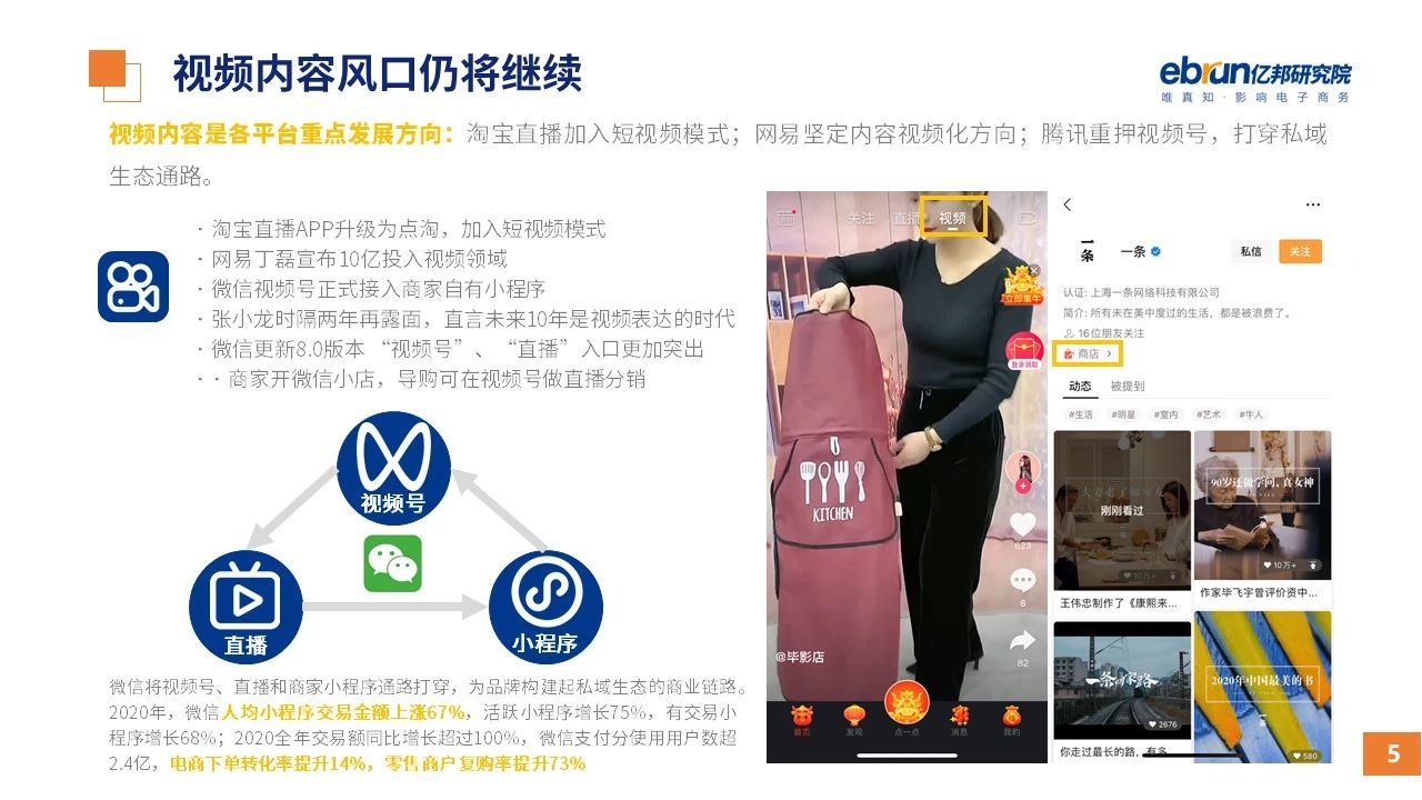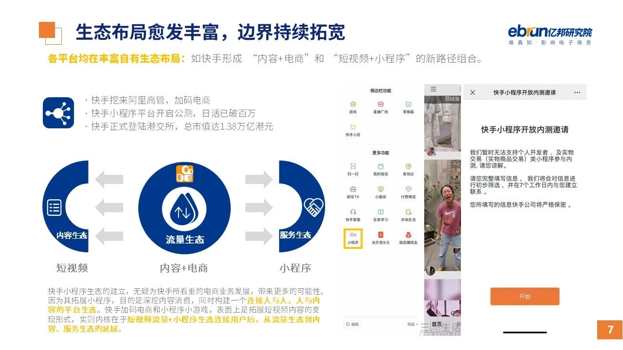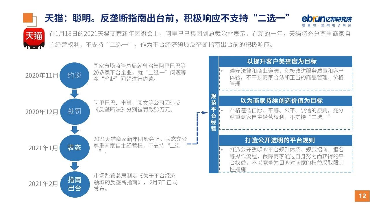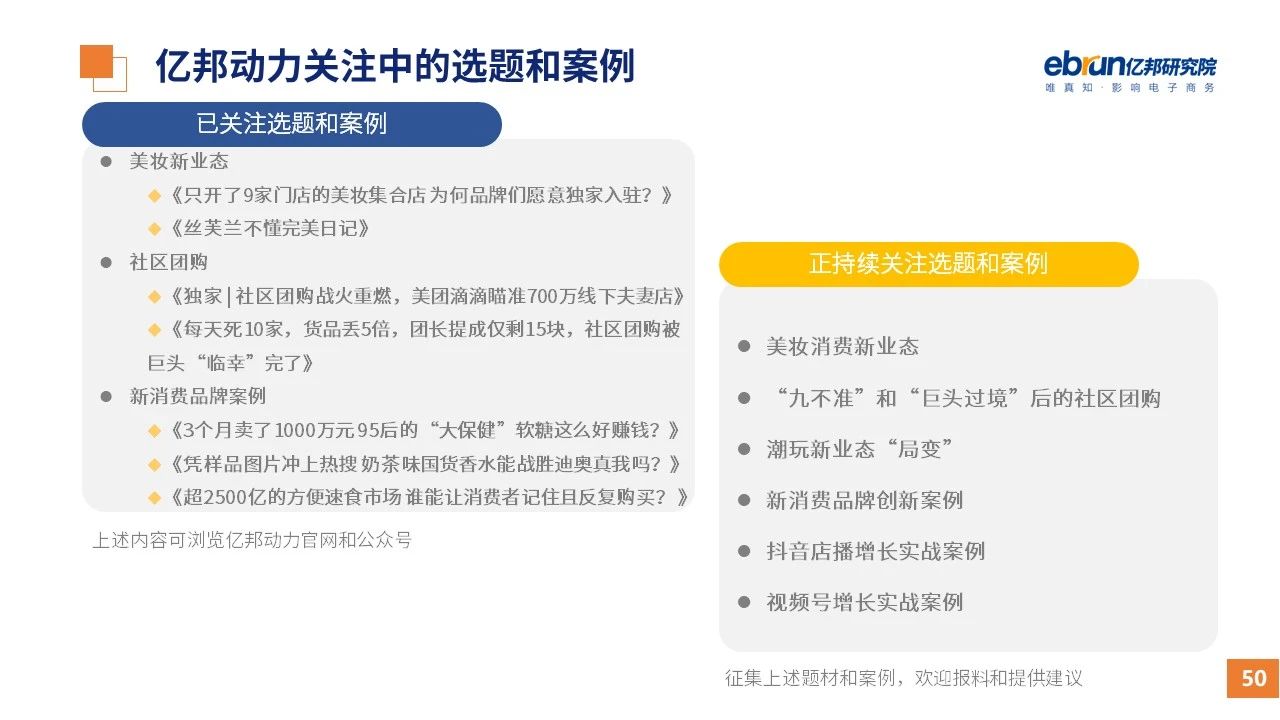 縱觀2021年1月,各平臺(tái)豐富自有生態(tài)布局,如淘寶直播(點(diǎn)淘)加入短視頻模式、騰訊重押視頻號(hào)、快手加碼電商和小程序、抖音推出支付等;視頻內(nèi)容成為各平臺(tái)未來重點(diǎn)發(fā)力方向;“九不得”新規(guī)發(fā)布后社區(qū)團(tuán)購仍熱情不減;國家和市場(chǎng)對(duì)互聯(lián)網(wǎng)巨頭和電商相關(guān)消費(fèi)加大監(jiān)管力度……你信和不信,你知道和不知道的,都在這份億邦動(dòng)力研究院正式發(fā)布的