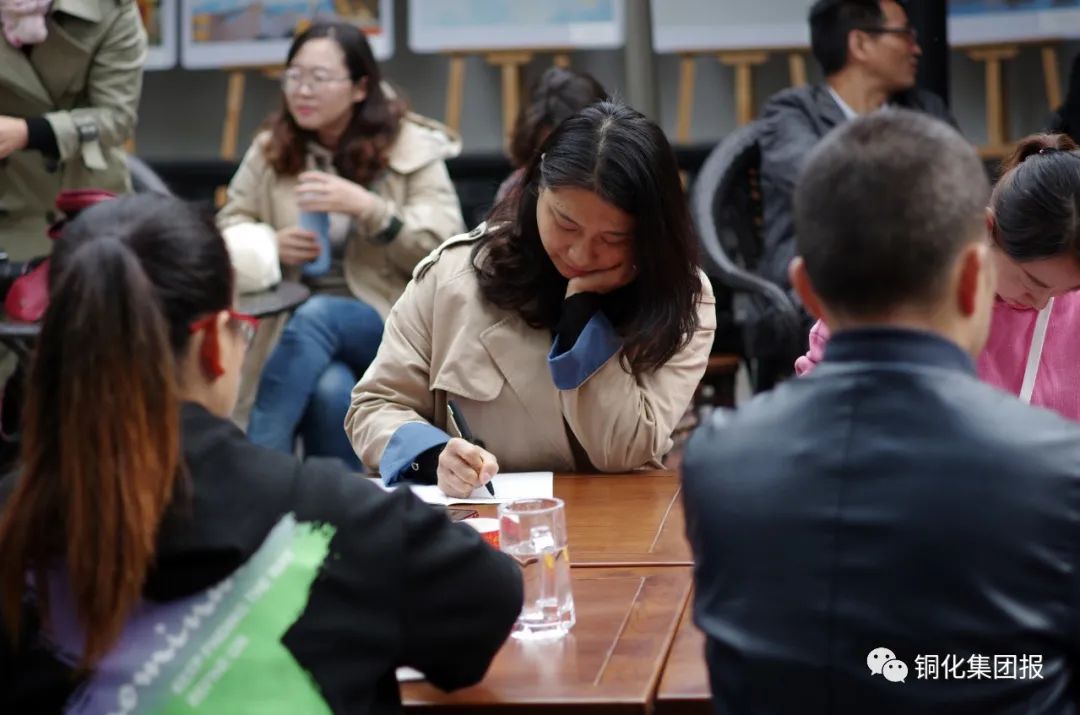 “好香啊,真是神仙處所!”“腦洞夠大呀,在這兒培訓(xùn)也是享受!”一進門,通訊員們便被書院典雅秋色和濃郁桂香所吸引,就連《銅陵日報》與《銅化集團》報的4位老師也忍不住贊嘆:“花香伴書香,確是看書、學(xué)習(xí)的佳境!”幾張小桌拼湊在院里的桂花樹下,小方凳圍坐一圈,培訓(xùn)班正式開課。沒有電子屏,也沒有刻意準(zhǔn)備的課件,一縷花香,一杯清茶,拋開拘謹(jǐn),“師生”促膝圍坐,開啟了“嘮嗑”式培訓(xùn)。通訊員們把平時找新聞、寫新聞過程中遇到的困惑、難事拿出來發(fā)問求解,4位編輯老師也結(jié)合多年采、寫、編經(jīng)驗和現(xiàn)實所遇事例盡心為大家答疑解惑,通訊員們之間還結(jié)合自己見報之作分享了各自心得。