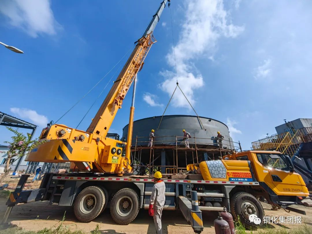 項目完工投用后,每年可處理選礦廢水247.5萬立方米、酸性廢水1000萬立方米,去除COD1485噸、硫化物146.03噸、重金屬錳208噸,在保障原生產(chǎn)線正常運行的同時,顯著降低相關(guān)污染物排放,實現(xiàn)外排水水質(zhì)穩(wěn)定達標,有效保護當?shù)厮h(huán)境,環(huán)境效益和社會效益顯著。上圖為吊裝作業(yè)現(xiàn)場。