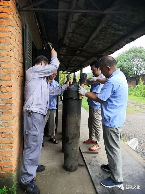 坐上皮卡車,我們一路顛簸來到一處偏遠(yuǎn)的庫房,氧氣乙炔儲(chǔ)存點(diǎn)。路上,李部長給大家做了簡單的說明,原來今天是要給氣瓶套上防震圈,簡稱“套圈”。防震圈不屬于氣瓶的附件,所以入庫的氣瓶都沒有佩戴防震圈。但按照國家危險(xiǎn)品運(yùn)輸有關(guān)規(guī)定,在運(yùn)輸和裝卸氣瓶時(shí),必須佩戴防震圈。為了防止氣瓶在運(yùn)輸過程中發(fā)生震動(dòng)或碰撞危險(xiǎn),保證領(lǐng)用單位使用安全,倉儲(chǔ)部決定,自行購買防震圈并安裝。