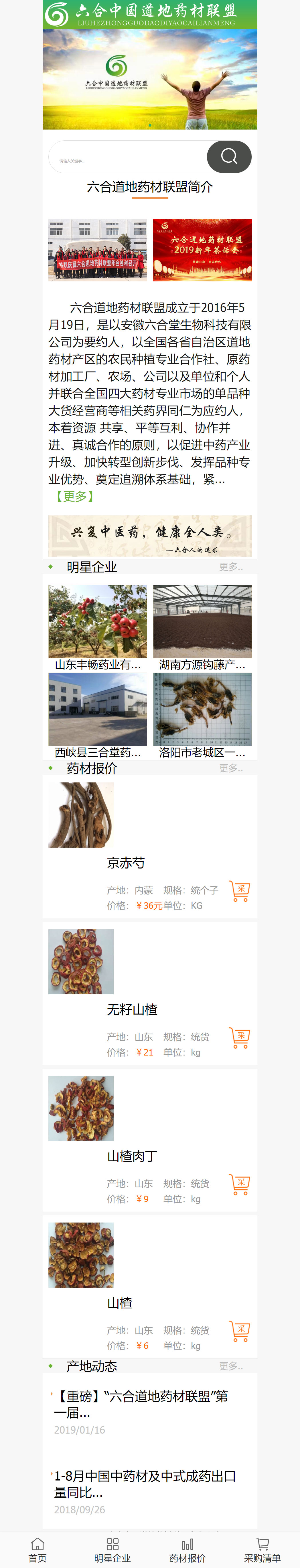 六合道地藥材聯(lián)盟成立于2016年5月19日,是以安徽六合堂生物科技有限公司為要約人,以全國各省自治區(qū)道地藥材產(chǎn)區(qū)的農(nóng)民種植專業(yè)合作社、原藥材加工廠、農(nóng)場、公司以及單位和個人并聯(lián)合全國四大藥材專業(yè)市場的單品種大貨經(jīng)營商等相關(guān)藥界同仁為應(yīng)約人,本著資源 共享、平等互利、協(xié)作并進(jìn)、真誠合作的原則,以促進(jìn)中藥產(chǎn)業(yè)升級、加快轉(zhuǎn)型創(chuàng)新步伐、發(fā)揮品種專業(yè)優(yōu)勢、奠定追溯體系基礎(chǔ),